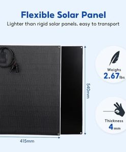 - 【35W Flexible Solar Panel】 35W flexible solar panel is made of high-quality monocrystalline, easy to fit on the surface of the RV and other objects. The flexible solar panel can maximize the absorption of solar energy light with a 22% conversion rate when used in sunny conditions.