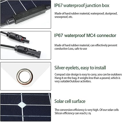- **Flexible Solar Panels**: Designed for versatility, these flexible solar panels can be bent at angles of up to 30 degrees. They are perfect for installation on curved surfaces such as RVs, boats, yachts, trucks, cars, and trailers, accommodating any irregular shapes with ease.
