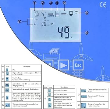 - ➤【MULTIPLE PROTECTIONS】This wind solar hybrid systems controller has solar reverse protection, overload, undervoltage and overload protection, battery reverse protection and open circuit protection, overload protection