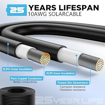 “Shop 10AWG Solar Wire! Durable 100ft tinned copper cable perfect for solar panels, RVs, and boats. Get yours today and power up your adventures!”