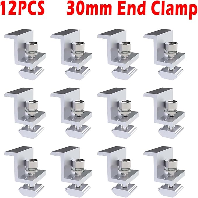 Secure your solar panels with our 12pcs PV Solar Panel Mount Bracket End Clamps! Easy installation with durable aluminum alloy. Order now!