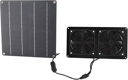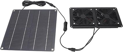- [Solar Panel Fan Kit] This solar exhaust fan kit adopts 2 upgraded fans with reinforced blades and strong airflow, helps to dissipate heat and odors, enhancing ventilation and cooling