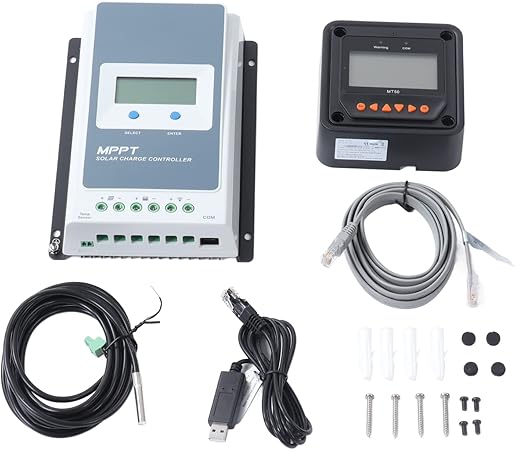 - HIGH EFFICIENCY: Tracking efficiency ≥99.5%, maximum conversion efficiency is 98%, with 12V 24V automatic working system voltage identification, automatic saving function. Two voltage disconnection levels, has charging power and current limiting function