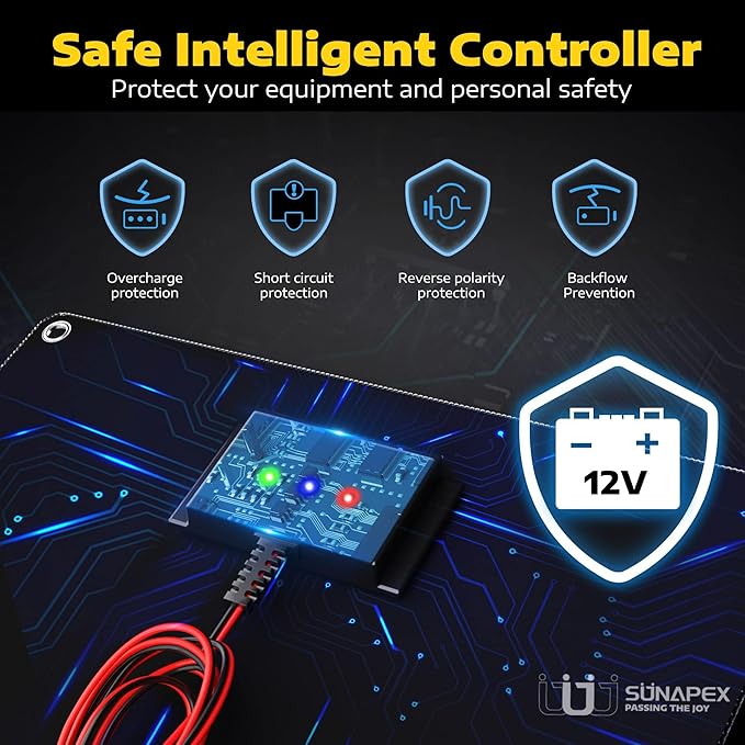 Charge your vehicles effortlessly with the SUNAPEX 20W Solar Panel! Portable, waterproof, and efficient—keep your battery maintained today!