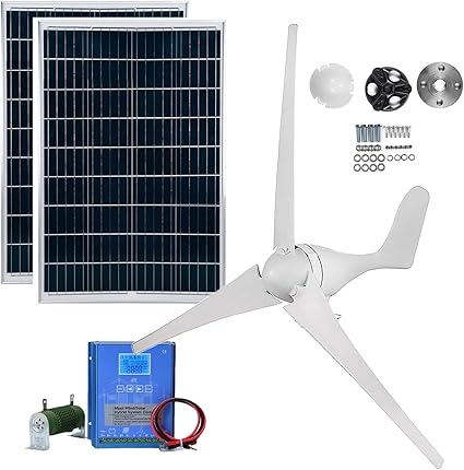 - Efficient Hybrid Power Generation:Equipped with a powerful wind generator and two 100W solar panels, this hybrid system offers stable and sustainable energy, ideal for charging batteries in off-grid setups like cabins, boats, or RVs