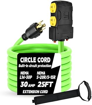 - ETL Listed: Heavy duty 4 prong 10 gauge power cord with NAME L14-30P/Four 5-15/5-20R adapter, capable of handling up to 30A and 3750 watts of power at 125/250 volts, 25ft