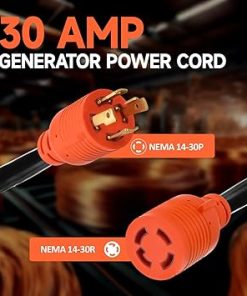 - Heavy-Duty 30amp Generator Cord:Dual 125V/250V, STW 6/3 + 10AWG copper conductor with flame-retardant PVC jacket. NEMA 14-30P male plug & L14-30R female twist-lock connector. Max 12500W, Temperature range: -40℉ to 140℉. Durable, safe, and reliable for RVs and generators