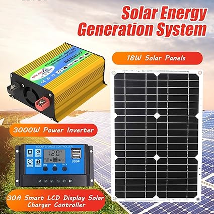 - Complete Kit for Convenience: This solar panel kit includes everything you need—3000W inverter, solar panel, charge controller, clips, and user manual—making setup quick and easy for any user.