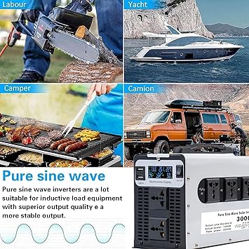 - Widely used: The inverter is a device that can be used anywhere for electrical appliances, even if you are away from the grid, it is perfect for laptops, fans, refrigerators, kettles and game consoles for emergency situations, camping, and RVs, trucks, cars, solar panels