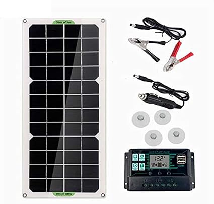 - Comprehensive Kit: Includes a 10A charge controller for safe and efficient charging, an alligator clip for easy connection, a USB car charger, and 4 suction cups for versatile mounting.