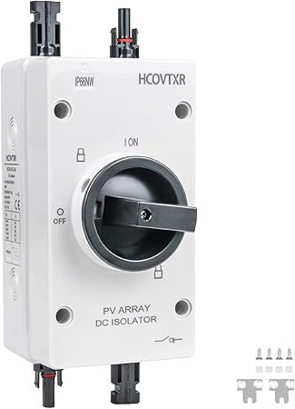 - QUICK & EASY INSTALLATION: Pre-wired with solar connectors and including mounting screws, solar isolator disconnect switch allows for fast, hassle-free connections to solar panels or inverters, saving time and effort