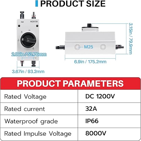 - ENHANCED SAFETY FEATURES: Equipped with a lockable OFF position, this switch prevents accidental activation, ensuring safe operation during maintenance or repairs. Perfect for residential and commercial solar systems