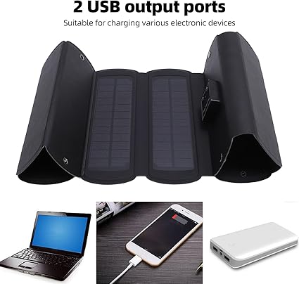 - VERSATILE USB OUTPUT: Equipped with 2 USB output ports, this solar panel is compatible with a variety of electronic devices, allowing you to charging multiple gadgets simultaneously.