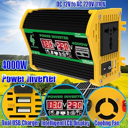 - Powerful Protection: Security is our top priority. The 4000W Pure Sine Wave Inverter’s aluminum alloy housing provides advanced drop and impact protection, making it ideal for outdoor adventures. The high-speed intelligent cooling fan further ensures that the inverter stays cool and prevents power shortage.