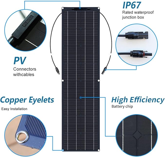 - 【EASY TO USE】The aluminum frame and ETFE coating ensure long-term performance. Effortlessly integrate with your existing solar setup—no specialized tools required. Perfect for RV owners, boaters, or anyone seeking a plug-and-play renewable energy solution