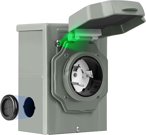 - 【Safety Light Indication】The inlet box features a bright green warning light that illuminates once the power connection is successfully made. This clear, visible green indicator ensures that you can easily confirm the connection status, especially in low-light or nighttime conditions.