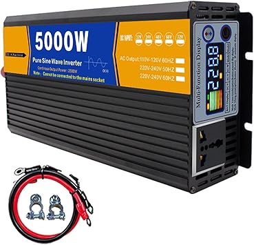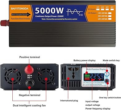 - ★[Efficiency and Durability]- It Can Convert 12V/24V/48V/60V/72V DC Power to 110V~120v ,220v-240v AC Household Power with AC Outlet. Engineered with high – quality components, this inverter offers excellent energy efficiency, minimizing power loss during the conversion process.