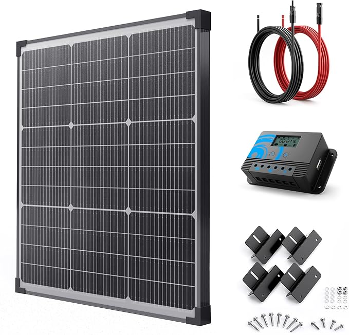 50W Solar Power Kit with N-Type Panel, 20FT Cable & Charge Controller