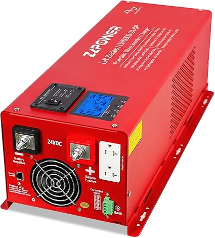 - 🌞💡【ZLPOWER 6000W DC 24V Pure Sine Wave Inverter】: Powerful 6000W inverter charger with 18000W surge power for 20 seconds. 24V & 220-240V input, 110-120V/220-240V split phase output pure sine wave. Comes with 90A battery charger, 30A transfer switch, and a handy remote control with LCD display and battery temperature sensor.