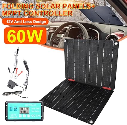 60W Portable ETFE Solar Panel Kit with 60A Controller for Cars