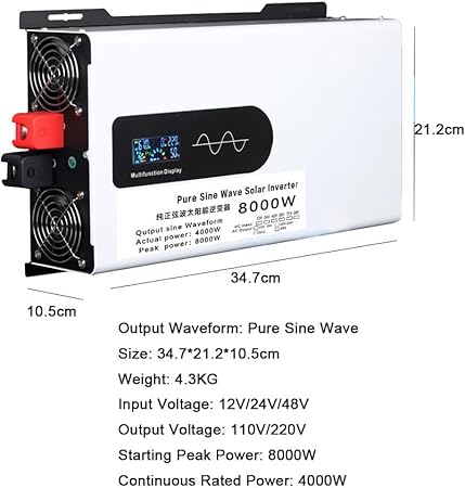 - 【Pure Sine Wave Inverter】This 5000W/8000W pure sine wave inverter converts 12V/24V/48V DC to 110V/110V AC. It is durable, lightweight, compact and perfect for carrying. It can be used for a variety of devices, making it the ultimate car charger for road trips, vacations or remote workstations.