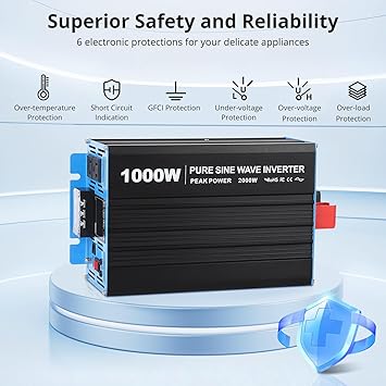 - Protects & Enhances Your Electronics:Advanced pure sine wave technology delivers grid-quality AC power, safeguarding and extending the lifespan of your electronics and appliances like TVs, laptops, freezers, flood lights, and tablets. The inverter operates quietly with high inductive loads, providing a smoother, cooler, and quieter experience for your devices.