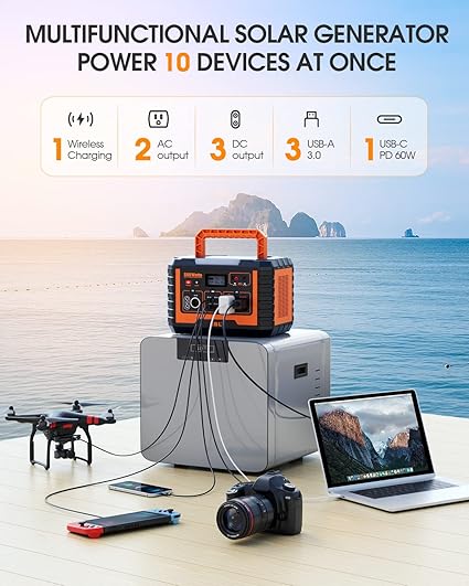 - 【Up to 10 Charging Ports – Meet All Your Needs】: The EBL portable solar generator has 2 AC outlets, 3 DC outlets, 2 AC outlets, 1 USB-C PD Quick 60W port, 3 Quick charge 3.0 ports, and 1 wireless charging for phones. It can power up to 10 devices simultaneously with all commonly used ports available.