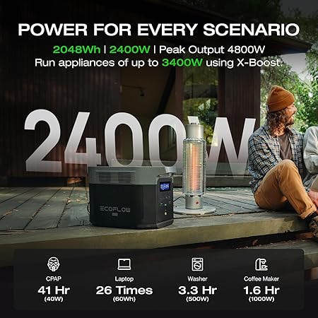 - [Power 99% of Your Household Devices] Run pretty much any of your home appliances with an output of up to 2400W. With 15 outlets, there’s space for any device. Plus, with X-Boost mode, power some high-wattage appliances with up to 3400W.