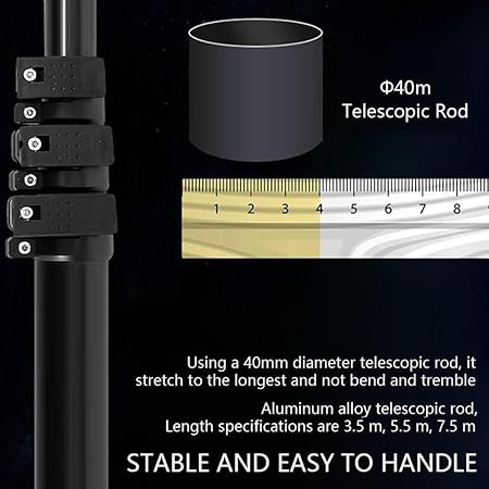 - ★【Length adjustable】Arbitrary telescopic length up to 3.5 – 7.5 meters, The locking buckle structure is adopted, the length of the telescopic rod can be adjusted arbitrarily, and it can be easily cleaned from the feet to the bottom. The vertical photovoltaic panel array can clean about 4 rows