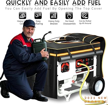- [Convenient To Use] The zippers and Velcro make this generator covers easily to put on and take off your generator,and it also guarantees the cover fit firmly over the generator. The generator cover contains zipper at the top that can be open, so that you can add fuel easily. Furthermore, the zipper is waterproof.
