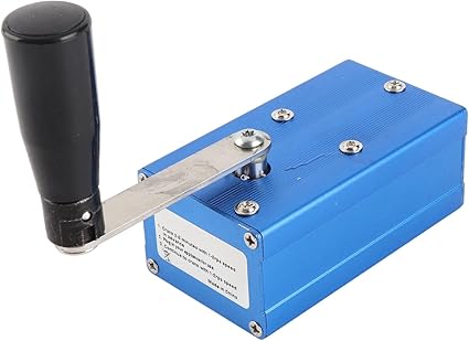 - STURDY MATERIAL: The hand generator features a blue aluminum alloy case, silver stainless steel rocker, silver aluminum alloy handle, silver stainless steel button, black aluminum alloy light