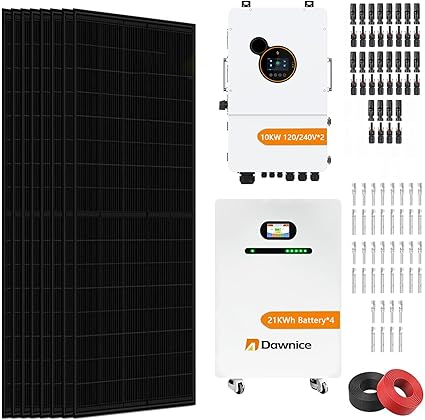 - 【2Sets 10KW Hybrid Inverter】The Dawnice 120V/240V 10KW Pure Sine Wave Inverter with MPPT Charger controller,Rated Output Power: 10000W, This 10000W pure sine wave inverter is a new all-in-one solar charge inverter, AC output voltage is 120V/240V,It efficiently converts the direct current (DC) generated by the solar panels into alternating current (AC) that can be used to power your electrical devices.