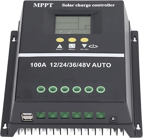 - 1. MPPT TECHNOLOGY: 100A MPPT solar controller, using advanced MPPT maximum power point tracking technology algorithm, 12V, 24V, 36V, 48V automatic identification; Dual USB 5V charging ports can quickly track the maximum power point of PV system in any environment, and the tracking efficiency is not less than 99.5%. Significantly improved the energy utilization efficiency of solar systems