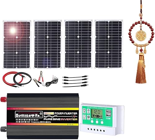 Off-Grid Solar Panel Kit with Pure Sine Wave Inverter System 100W Solar Panel Kit with 50A PWM Charge Controller Included