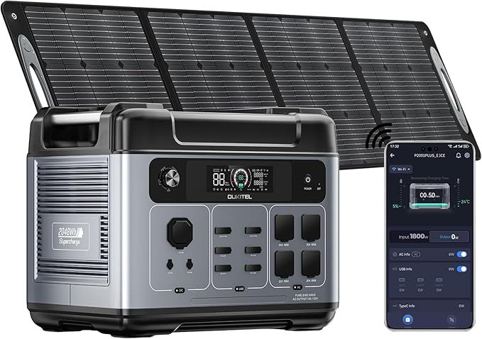- 【2400W Output And 2048Wh Large Capacity】 OUKITEL outdoor power station has a high power of 2400w (5000w peak), which can easily run most of the appliances, such as refrigerators, juicers, microwave ovens, and air conditioners.With a large capacity of 2048wh, the solar powered generator can run the devices for a long time. Ideal battery backup for home camping and emergency.