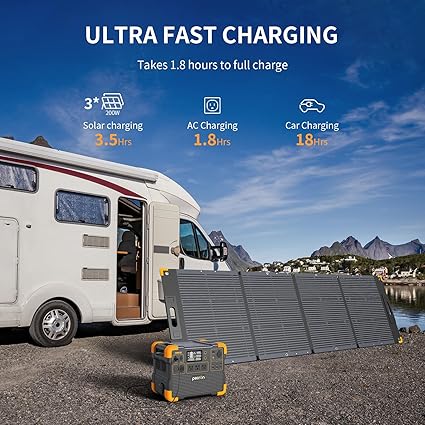 - FAST CHARGING: Up to 1400W AC Charging for an 80% charge in a speedy 0.9 hour, fully charged in 1.8 Hours. With solar panels charge, MAX 700W solar input, fully charged in 4.5 hours.