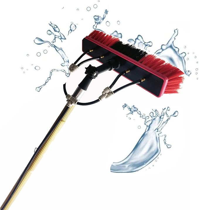 - WATER CLEANING BRUSH: 35cm water hole large brush head, brass quick connector, can be easily connected to any tap. And the hose can be connected to the brush head to discharge water, quickly cleaning any place.