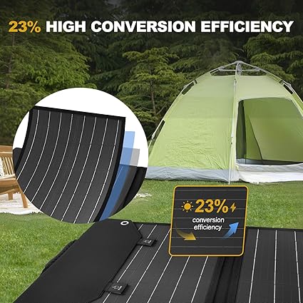 - 【Premium Material】- Apdale portable solar panels are engineered with premium monocrystalline silicon solar cells and ETFE material boasting an exceptional 23% conversion efficiency. This 100W solar panel portable is designed to harness maximum solar energy, ensuring optimal power generation even in challenging conditions