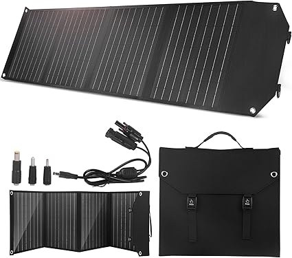 - 【Portable & Foldable】This solar panel portable with case weighs only 8.5lbs, and the folded size is 15.7*14.7*2in, which is easy to carry, hang and store. Within a few seconds you can easily adjust the foldable solar panel’s angle to optimize sunlight absorption and set it up to efficiently harness solar energy. Won’t take up too much space in your bag, provides endless power for camping, outdoors, garden, RV and caravan in the sun
