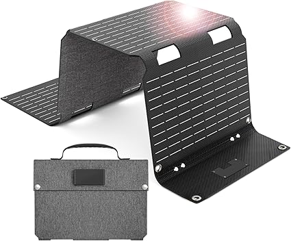 - Multi-Port Solar Power: Equipped with multiple ports—QC3.0 USB-A(5V/3.4A, 9V/2.2A, 12V/2A), USB-C (5V/3A, 9V/ 2A, 12V/1.6A), and DC output (18V 45W max)—this solar panel powers smartphones, laptops, tablets, cameras, and more. The smart IC chip ensures maximum charging speed while protecting devices from overcharging and overload.