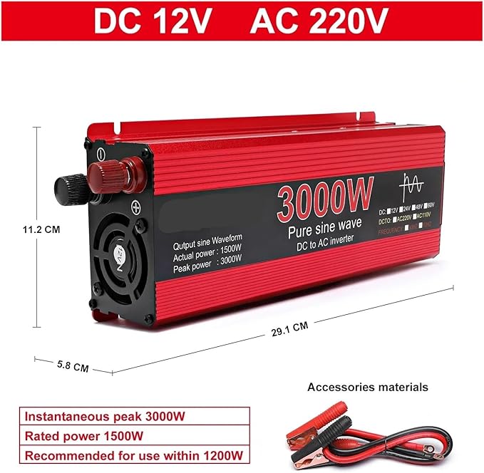- Protections: Temperature controlled cooling fan; low and high voltage; overload; short circuit; high low voltage; internal fuse; battery reverse connection and other multiple protection functions