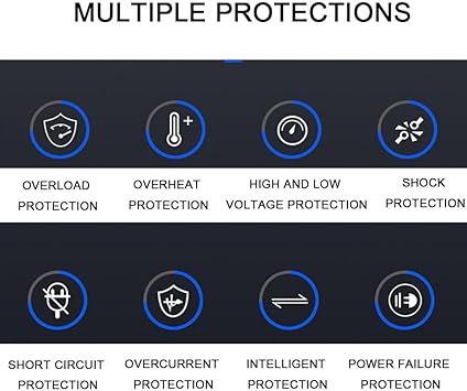 - Multiple Protections:Short circuit, overcharge, overvoltage or undervoltage protection, built in and external fuse overtemperature, automatic shutdown and intelligent silent cooling fan, make your product safe and reliable.