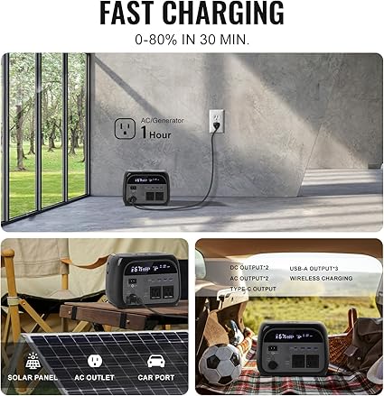 - 【8+1 Ports for Charging】- Plug in 8 devices and 1 wireless charging for your holidays. The power station comes with 2 AC ports, 3 USB-A ports, a USB-C port, a DC output and a car outlet
