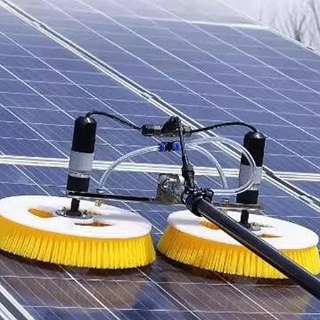 - 【LARGE HIGH DENSITY BRUSH HEAD】- The solar photovoltaic cleaning machine adopts a double brush head design and is equipped with 2 large nylon brush heads that are hand-woven into discs. It will not remove bristles or damage photovoltaic panels, and the cleaning area can reach 70cm