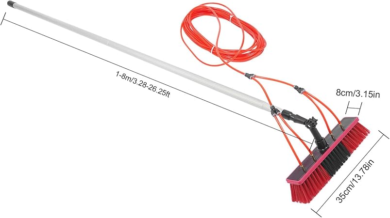 - 【Adjustable Design】: With a universal joint, the brush head can be adjusted 180 ° left and right. By combining 8 poles, it can reach up to 24.3ft, making it easy to clean various corners at different heights.