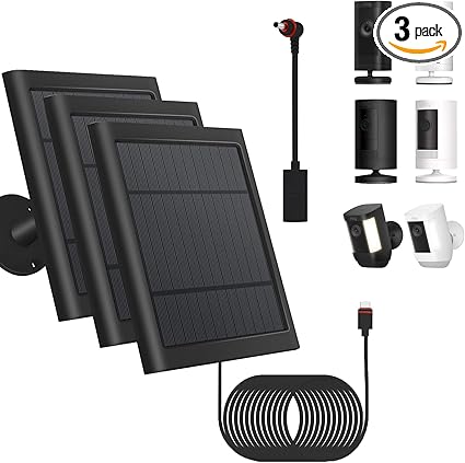- 【More Powerful】solar panel for ring camera made of high quality fireproof construction with charging safety and protection against over-current, overheating, over-voltage and short-circuit. Maximum charging output is 6V 4W to provide continuous and fast power for your surveillance camera. Come with USB C Plug Adapter + a Barrel DC Plug adapter. More widely used than other solar panels.