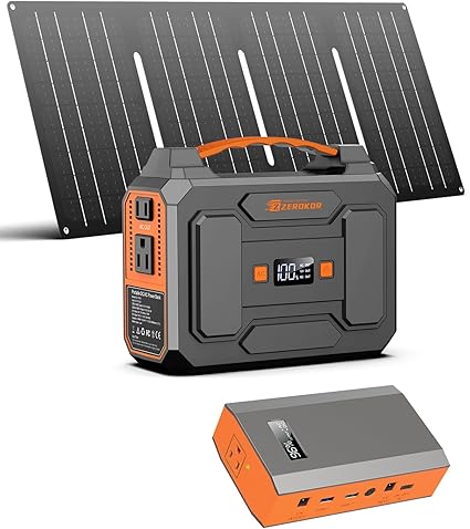 - 🌍Portable Mini Generator with 40W Solar Panel Included: ZeroKor solar generator kit includes a 100W portable camping lithium-ion battery pack and a 40W foldable solar panel. As an outdoor AC power bank, it is an ideal necessity for outdoor activities, hurricanes and home emergency power outage, so you will never worry about sudden power failure to delay your activities (Tips:Using electrical appliances over 100W may damage the portable battery generator)