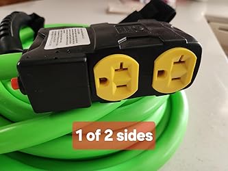 The Acxccdn 25 foot generator extension cord converts the 240VAC NEMA L14-30 to separate dual 120VAC standard 3 prong outlets that are protected by 20A circuit breakers built into the quality outlets ! This 10 gauge 25 foot extension cord is made for the outdoors, direct sunlight rated, and is waterproof. This product was tested under load and performed flawlessly. This was the product I was looking for to power all of my indoor 120VAC devices directly from the 240VAC generator outlet. Overall product quality is very good, the 120VAC 3 prong sockets are very solid and I really like the integrated 20A circuit breakers in each 120V phase.