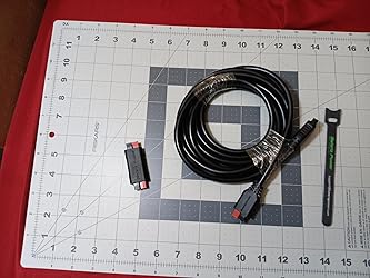 This is a 10 foot long cord for a 50 amp generator inlet. For efficiency I don't want it to be too long, and this is a good price. The connectors are safety listed by ETL and feels ruggedly built and properly heavy with 8 AWG UL-listeđ 105°C cable. Goes in my inlet solidly and easily and will work great for up to 12,000 watt generators. Comes with a carrying strap and a screw adapter.