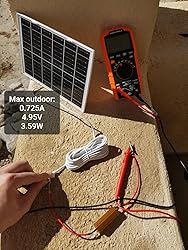 8W was either hopeful or dishonest. I've tested other panels that claimed 5W and the resulting numbers were very similar. Even calculating the power output using the highest open circuit voltage, these still only reach 3.59W. On the sunniest day and using a perfectly matched impedance, you may increase the current and reach close to 5W, but I'm skeptical. The other panels that I tested are the same size. Either these are intended to be hyper efficient or someone lied about the power output. They can still work for your outdoor cameras, but don't inflate the numbers.